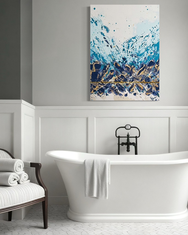 Finitions: L'oeuvre est vernie, donnant une très bonne longévité face au UV. Les bords du tableau sont peints pour un rendu esthétique vous laissant le choix d'un encadrement ou non