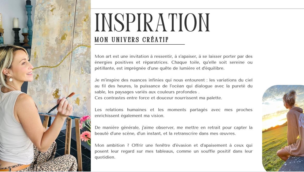 Bienvenue dans mon monde, où l’art se vit autant qu’il se contemple.