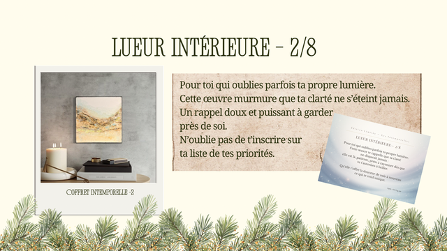 Offrez un cadeau qui traverse le temps… “Les Intemporelles” est une collection exclusive composée de 8 coffrets d’art, chacun contenant une œuvre originale. Chaque coffret comprend :