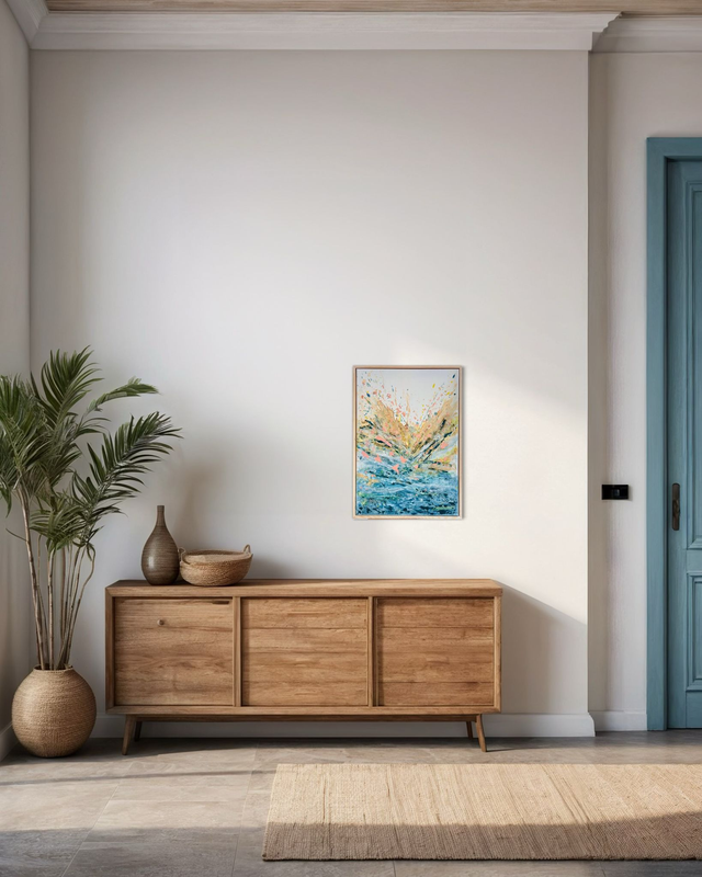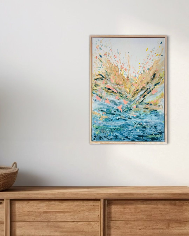 Description: Cette oeuvre capture la fraîcheur et l'intensité d'un matin nouveau, où tout semble possible.Les éclats de couleurs vives jaillissent, éveillant l'énergie brute de la journée. Le contraste des nuances bleutées évoquent la quiétude du réveil, la douceur de ce moment suspendu.Une invitation à commencer chaque jour avec audace et enthousiasme